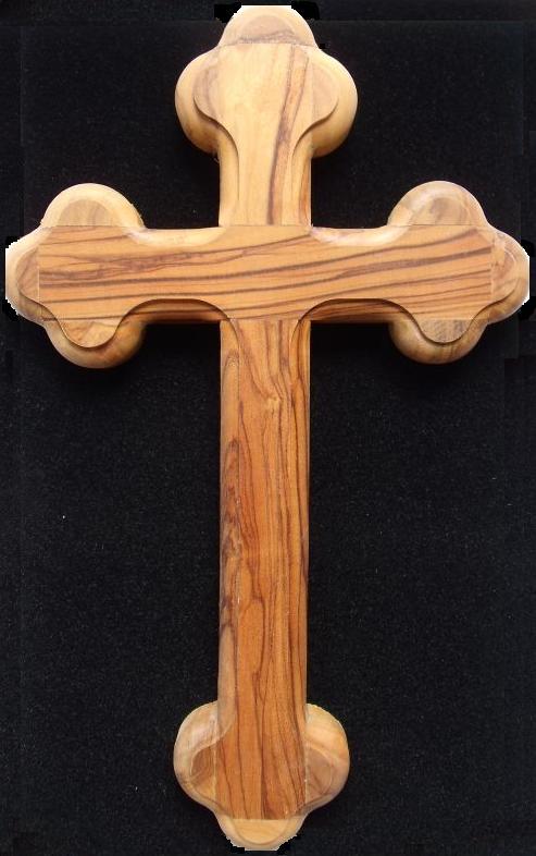 Krzyż w kształcie liścia koniczyny z Ziemi Świętej wykonany z drzewa oliwnego 14cm*8cm.Posiada świadectwo pochodzenia i eleganckie opakowanie.