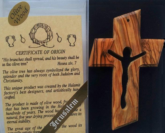 Krzyż grawerowany z Ziemi Świętej wykonany z drzewa oliwnego 13c*8cm.