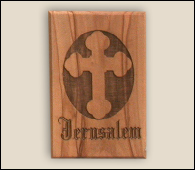 Magnes wykonany z drzewa oliwnego z Ziemi Świętej.Grawerowany laserem 4cm*6cm.