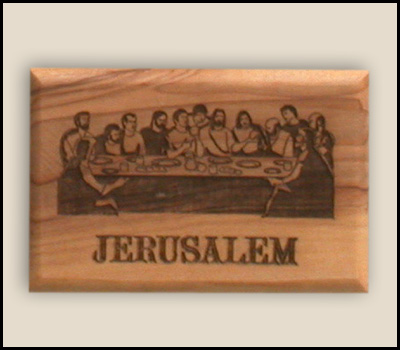 Magnes wykonany z drzewa oliwnego z Ziemi Świętej.Grawerowany laserem 4cm*6cm.