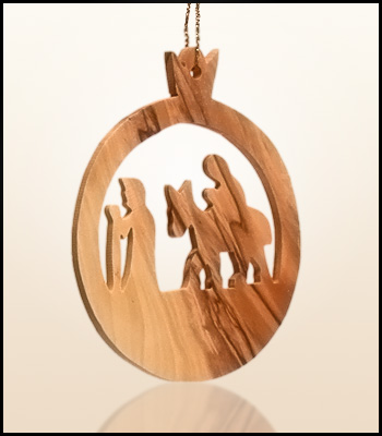 Wiszące świąteczne ozdoby z Ziemi Świętej wykonane z drzewa oliwnego.