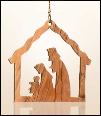 Wiszące świąteczne ozdoby z Ziemi Świętej wykonane z drzewa oliwnego.