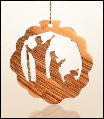 Wiszące świąteczne ozdoby z Ziemi Świętej wykonane z drzewa oliwnego.