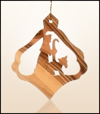Wiszące świąteczne ozdoby z Ziemi Świętej wykonane z drzewa oliwnego.