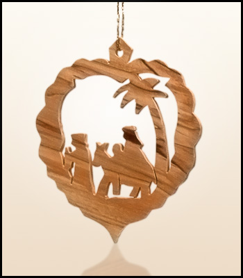 Wiszące świąteczne ozdoby z Ziemi Świętej wykonane z drzewa oliwnego.