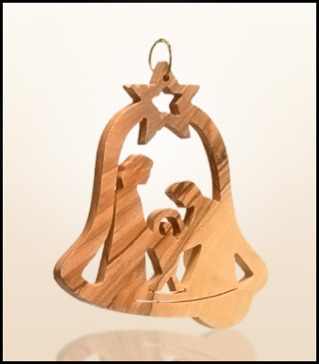Wiszące świąteczne ozdoby z Ziemi Świętej wykonane z drzewa oliwnego.