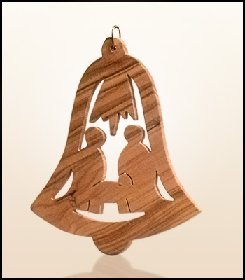 Wiszące świąteczne ozdoby z Ziemi Świętej wykonane z drzewa oliwnego.