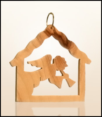 Wiszące świąteczne ozdoby z Ziemi Świętej wykonane z drzewa oliwnego.