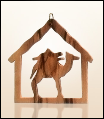 Wiszące świąteczne ozdoby z Ziemi Świętej wykonane z drzewa oliwnego.