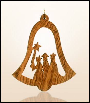 Wiszące świąteczne ozdoby z Ziemi Świętej wykonane z drzewa oliwnego.