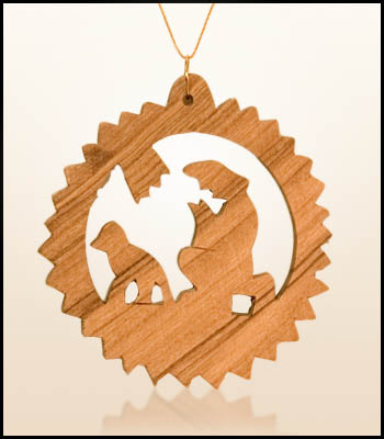 Wiszące świąteczne ozdoby z Ziemi Świętej wykonane z drzewa oliwnego.