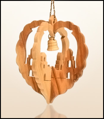 Wiszące świąteczne ozdoby z Ziemi Świętej wykonane z drzewa oliwnego.