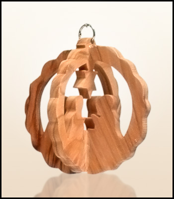 Wiszące świąteczne ozdoby z Ziemi Świętej wykonane z drzewa oliwnego.