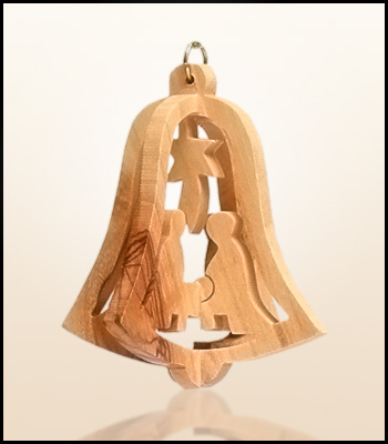 Wiszące świąteczne ozdoby z Ziemi Świętej wykonane z drzewa oliwnego.
