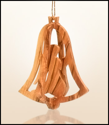 Wiszące świąteczne ozdoby z Ziemi Świętej wykonane z drzewa oliwnego.