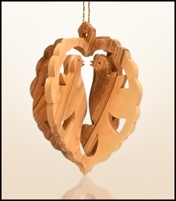 Wiszące świąteczne ozdoby z Ziemi Świętej wykonane z drzewa oliwnego.