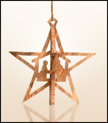 Wiszące świąteczne ozdoby z Ziemi Świętej wykonane z drzewa oliwnego.