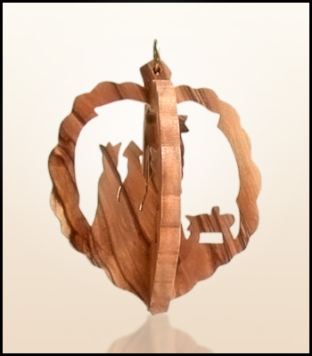 Wiszące świąteczne ozdoby z Ziemi Świętej wykonane z drzewa oliwnego.