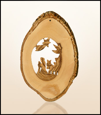 Wiszące, naturalne świąteczne ozdoby z Ziemi Świętej wykonane z drzewa oliwnego.