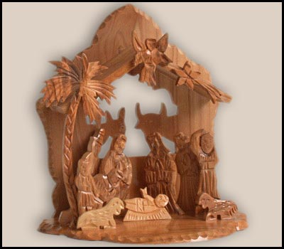 Szopka Bożenarodzeniowa z Ziemi Świętej wykonana z drzewa oliwnego. Rozmiar: 15.5cm*14cm. Posiada świadectwo pochodzenia i eleganckie opakowanie.