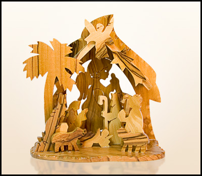 Szopka Bożonarodzeniowa z Ziemi Świętej wykonana z drzewa oliwnego.