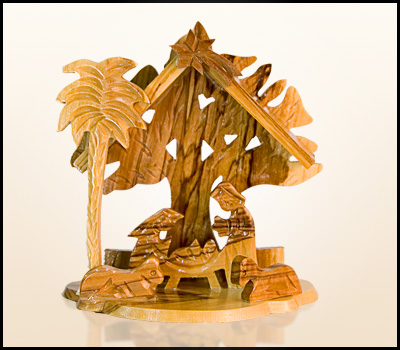 Szopka Bożenarodzeniowa z Ziemi Świętej wykonana z drzewa oliwnego.